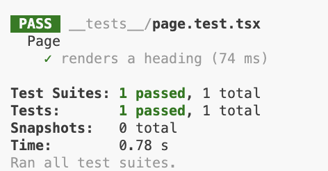 이렇게해서 Next.js에서 Jest와 React-testing-library를 사용해서 테스트 환경 구축이 완료되었다!